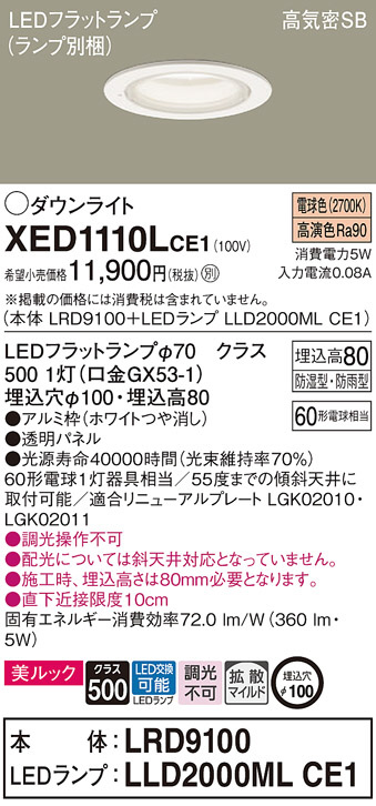 Panasonic ¥¨¥¯¥¹¥Æ¥ê¥¢¥À¥¦¥ó¥é¥¤¥È XED1110LCE1