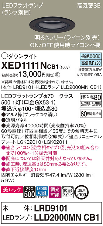 Panasonic ¥¨¥¯¥¹¥Æ¥ê¥¢¥À¥¦¥ó¥é¥¤¥È XED1111NCB1