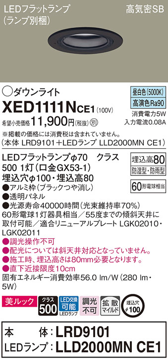 Panasonic ¥¨¥¯¥¹¥Æ¥ê¥¢¥À¥¦¥ó¥é¥¤¥È XED1111NCE1