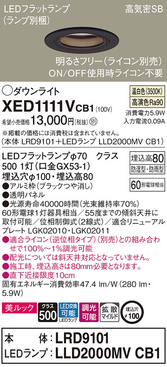 Panasonic ¥¨¥¯¥¹¥Æ¥ê¥¢¥À¥¦¥ó¥é¥¤¥È XED1111VCB1