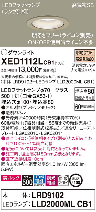 Panasonic ¥¨¥¯¥¹¥Æ¥ê¥¢¥À¥¦¥ó¥é¥¤¥È XED1112LCB1