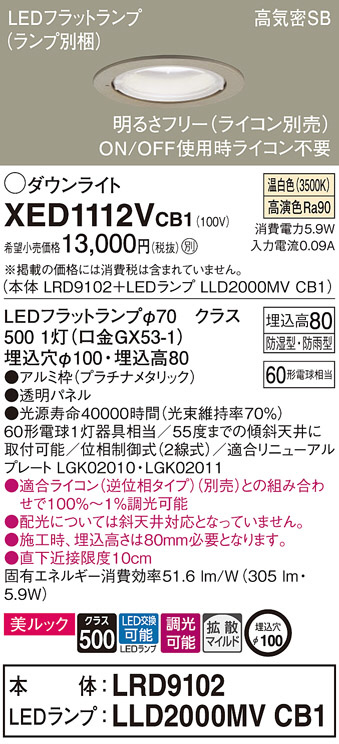 Panasonic ¥¨¥¯¥¹¥Æ¥ê¥¢¥À¥¦¥ó¥é¥¤¥È XED1112VCB1