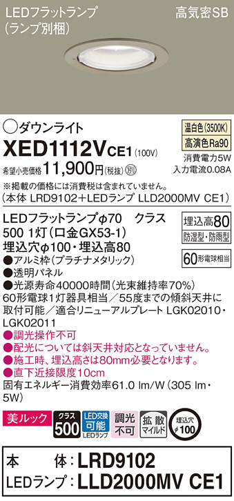 Panasonic ¥¨¥¯¥¹¥Æ¥ê¥¢¥À¥¦¥ó¥é¥¤¥È XED1112VCE1