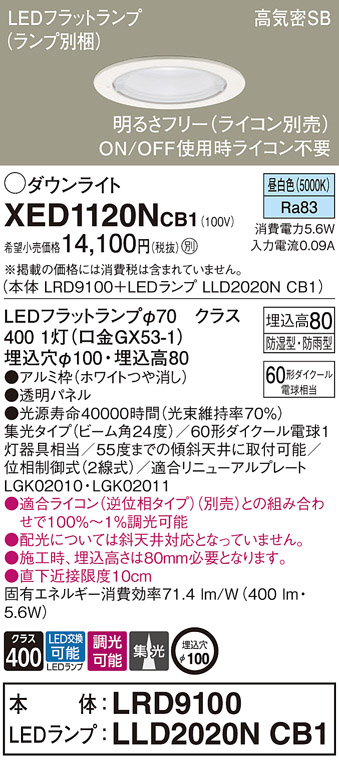 Panasonic ¥¨¥¯¥¹¥Æ¥ê¥¢¥À¥¦¥ó¥é¥¤¥È XED1120NCB1