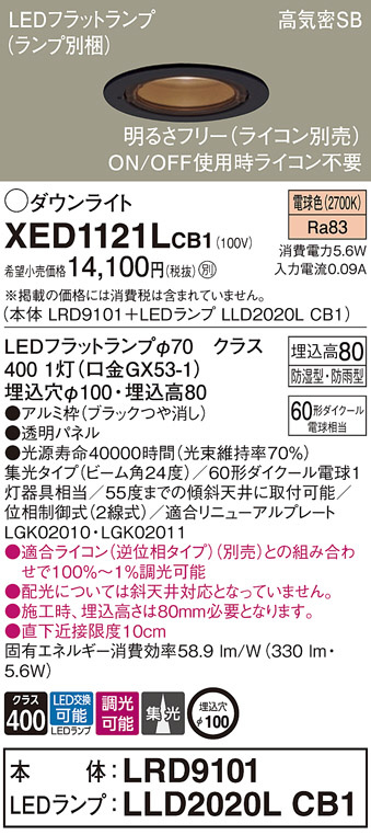 Panasonic ¥¨¥¯¥¹¥Æ¥ê¥¢¥À¥¦¥ó¥é¥¤¥È XED1121LCB1