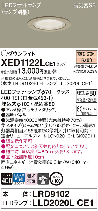 Panasonic ¥¨¥¯¥¹¥Æ¥ê¥¢¥À¥¦¥ó¥é¥¤¥È XED1122LCE1