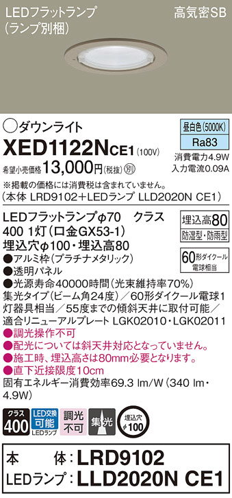 Panasonic ¥¨¥¯¥¹¥Æ¥ê¥¢¥À¥¦¥ó¥é¥¤¥È XED1122NCE1