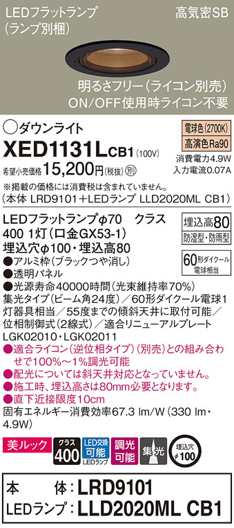Panasonic ¥¨¥¯¥¹¥Æ¥ê¥¢¥À¥¦¥ó¥é¥¤¥È XED1131LCB1
