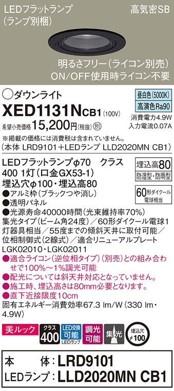 Panasonic ¥¨¥¯¥¹¥Æ¥ê¥¢¥À¥¦¥ó¥é¥¤¥È XED1131NCB1
