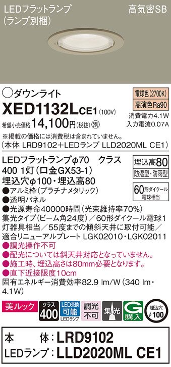 Panasonic ¥¨¥¯¥¹¥Æ¥ê¥¢¥À¥¦¥ó¥é¥¤¥È XED1132LCE1