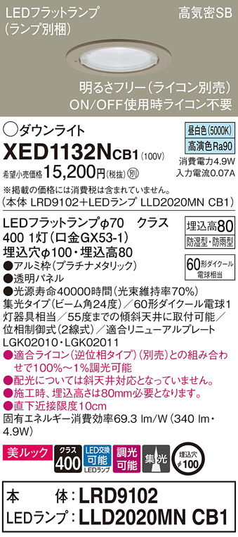 Panasonic ¥¨¥¯¥¹¥Æ¥ê¥¢¥À¥¦¥ó¥é¥¤¥È XED1132NCB1