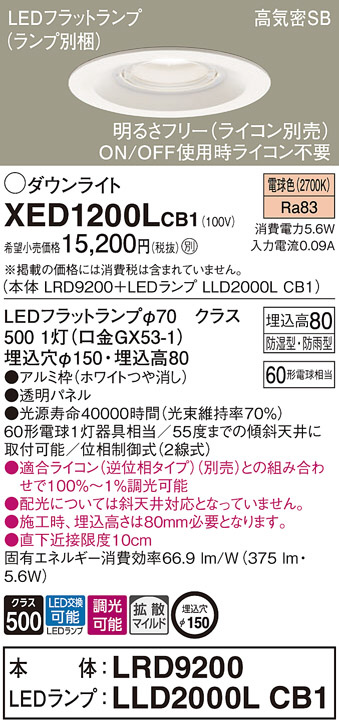 Panasonic ¥¨¥¯¥¹¥Æ¥ê¥¢¥À¥¦¥ó¥é¥¤¥È XED1200LCB1