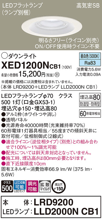 Panasonic ¥¨¥¯¥¹¥Æ¥ê¥¢¥À¥¦¥ó¥é¥¤¥È XED1200NCB1