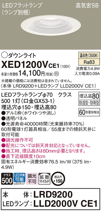 Panasonic ¥¨¥¯¥¹¥Æ¥ê¥¢¥À¥¦¥ó¥é¥¤¥È XED1200VCE1