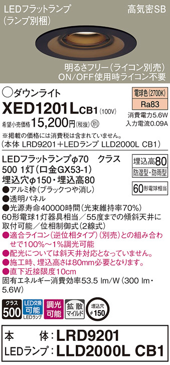 Panasonic ¥¨¥¯¥¹¥Æ¥ê¥¢¥À¥¦¥ó¥é¥¤¥È XED1201LCB1