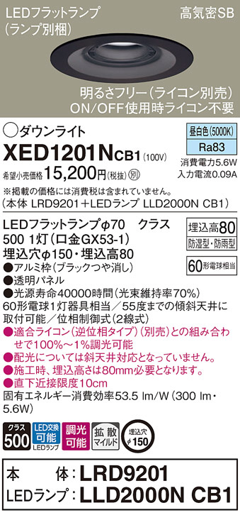 Panasonic ¥¨¥¯¥¹¥Æ¥ê¥¢¥À¥¦¥ó¥é¥¤¥È XED1201NCB1
