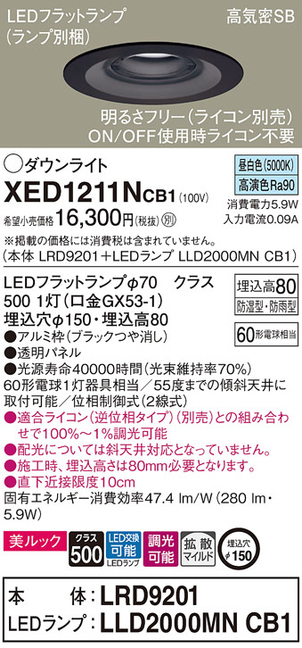 Panasonic ¥¨¥¯¥¹¥Æ¥ê¥¢¥À¥¦¥ó¥é¥¤¥È XED1211NCB1
