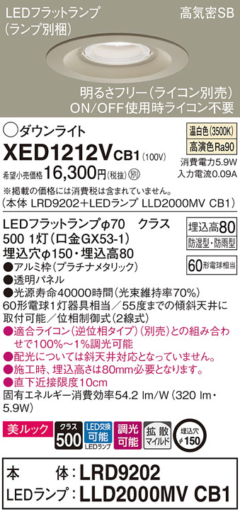 Panasonic ¥¨¥¯¥¹¥Æ¥ê¥¢¥À¥¦¥ó¥é¥¤¥È XED1212VCB1