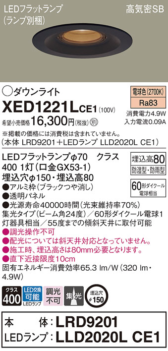 Panasonic ¥¨¥¯¥¹¥Æ¥ê¥¢¥À¥¦¥ó¥é¥¤¥È XED1221LCE1
