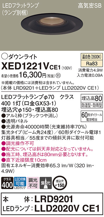 Panasonic ¥¨¥¯¥¹¥Æ¥ê¥¢¥À¥¦¥ó¥é¥¤¥È XED1221VCE1