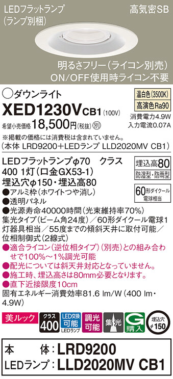 Panasonic ¥¨¥¯¥¹¥Æ¥ê¥¢¥À¥¦¥ó¥é¥¤¥È XED1230VCB1