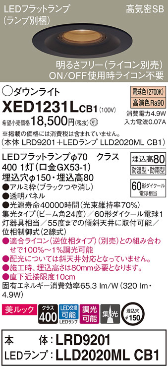Panasonic ¥¨¥¯¥¹¥Æ¥ê¥¢¥À¥¦¥ó¥é¥¤¥È XED1231LCB1