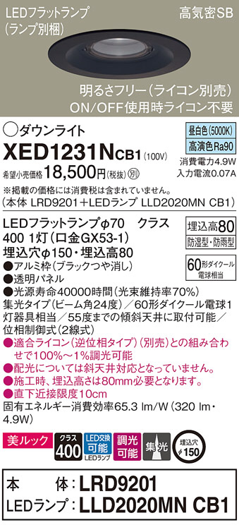 Panasonic ¥¨¥¯¥¹¥Æ¥ê¥¢¥À¥¦¥ó¥é¥¤¥È XED1231NCB1