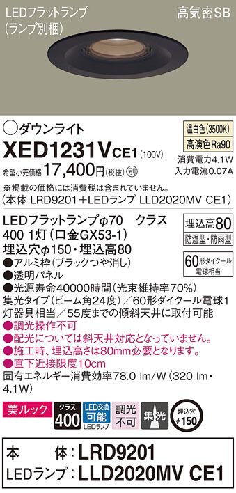 Panasonic ¥¨¥¯¥¹¥Æ¥ê¥¢¥À¥¦¥ó¥é¥¤¥È XED1231VCE1