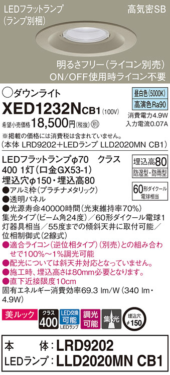 Panasonic ¥¨¥¯¥¹¥Æ¥ê¥¢¥À¥¦¥ó¥é¥¤¥È XED1232NCB1