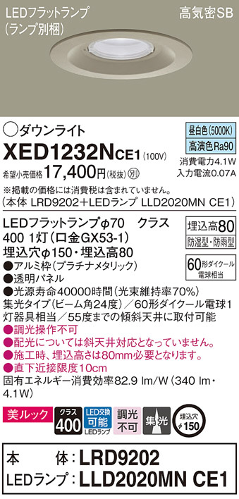 Panasonic ¥¨¥¯¥¹¥Æ¥ê¥¢¥À¥¦¥ó¥é¥¤¥È XED1232NCE1