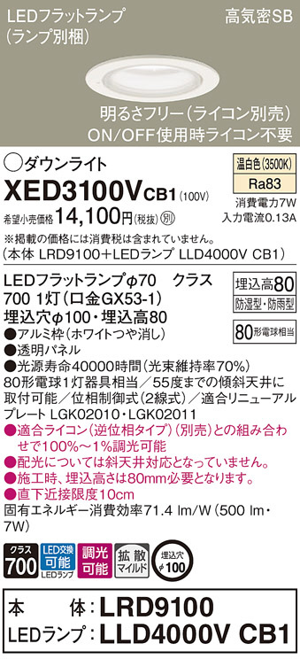 Panasonic ¥¨¥¯¥¹¥Æ¥ê¥¢¥À¥¦¥ó¥é¥¤¥È XED3100VCB1