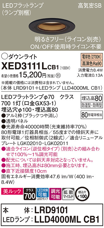 Panasonic ¥¨¥¯¥¹¥Æ¥ê¥¢¥À¥¦¥ó¥é¥¤¥È XED3111LCB1