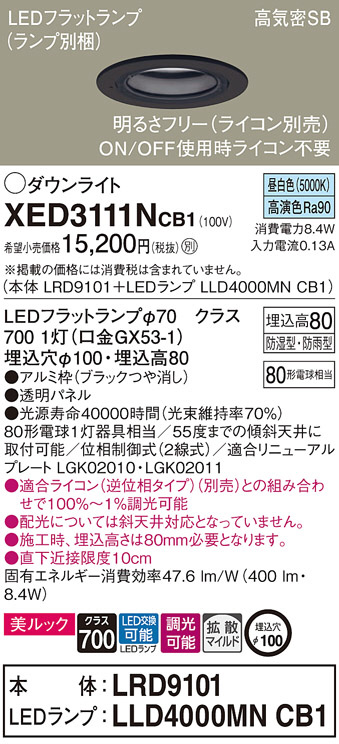 Panasonic ¥¨¥¯¥¹¥Æ¥ê¥¢¥À¥¦¥ó¥é¥¤¥È XED3111NCB1