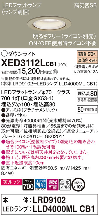 Panasonic ¥¨¥¯¥¹¥Æ¥ê¥¢¥À¥¦¥ó¥é¥¤¥È XED3112LCB1