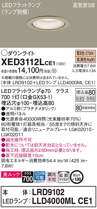 Panasonic ¥¨¥¯¥¹¥Æ¥ê¥¢¥À¥¦¥ó¥é¥¤¥È XED3112LCE1