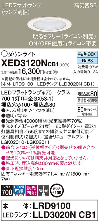 Panasonic ¥¨¥¯¥¹¥Æ¥ê¥¢¥À¥¦¥ó¥é¥¤¥È XED3120NCB1