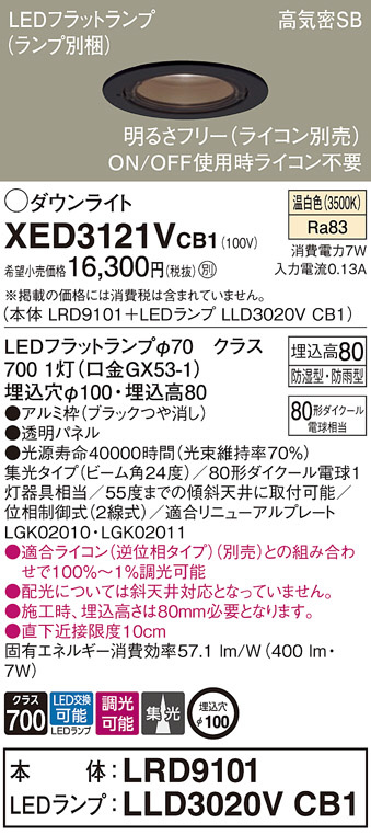 Panasonic ¥¨¥¯¥¹¥Æ¥ê¥¢¥À¥¦¥ó¥é¥¤¥È XED3121VCB1