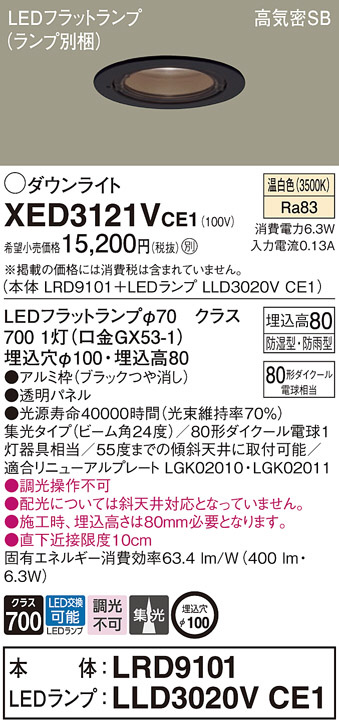 Panasonic ¥¨¥¯¥¹¥Æ¥ê¥¢¥À¥¦¥ó¥é¥¤¥È XED3121VCE1