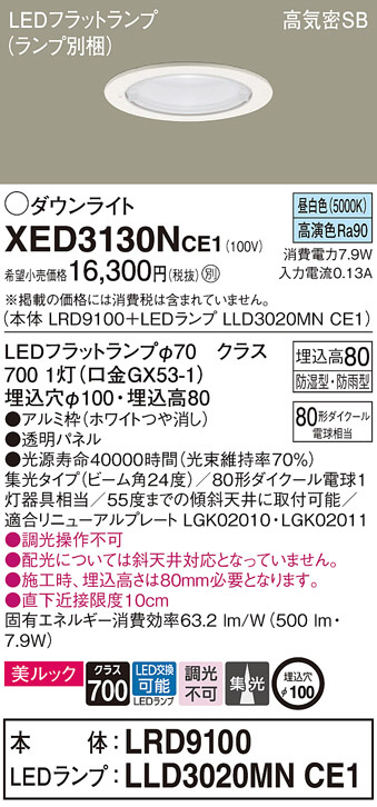 Panasonic ¥¨¥¯¥¹¥Æ¥ê¥¢¥À¥¦¥ó¥é¥¤¥È XED3130NCE1