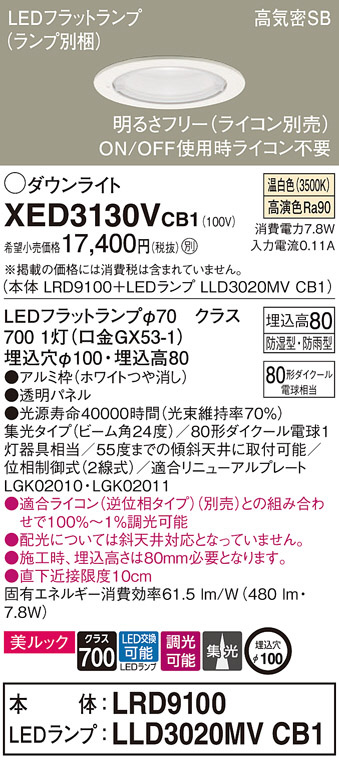 Panasonic ¥¨¥¯¥¹¥Æ¥ê¥¢¥À¥¦¥ó¥é¥¤¥È XED3130VCB1