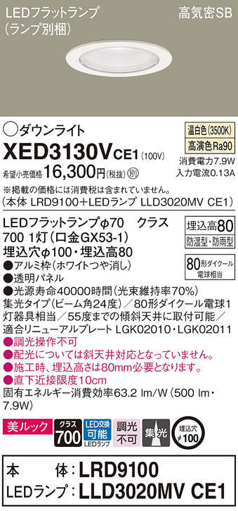 Panasonic ¥¨¥¯¥¹¥Æ¥ê¥¢¥À¥¦¥ó¥é¥¤¥È XED3130VCE1