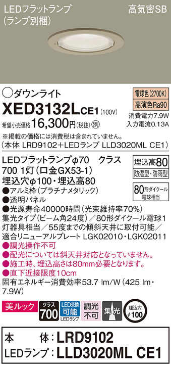 Panasonic ¥¨¥¯¥¹¥Æ¥ê¥¢¥À¥¦¥ó¥é¥¤¥È XED3132LCE1