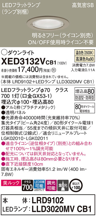 Panasonic ¥¨¥¯¥¹¥Æ¥ê¥¢¥À¥¦¥ó¥é¥¤¥È XED3132VCB1