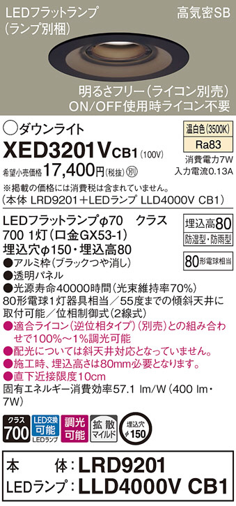 Panasonic ¥¨¥¯¥¹¥Æ¥ê¥¢¥À¥¦¥ó¥é¥¤¥È XED3201VCB1