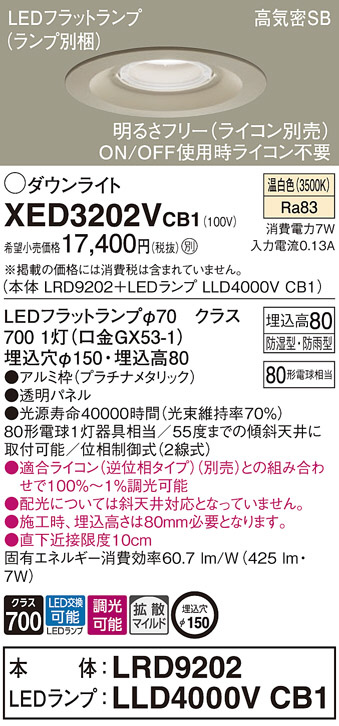 Panasonic ¥¨¥¯¥¹¥Æ¥ê¥¢¥À¥¦¥ó¥é¥¤¥È XED3202VCB1