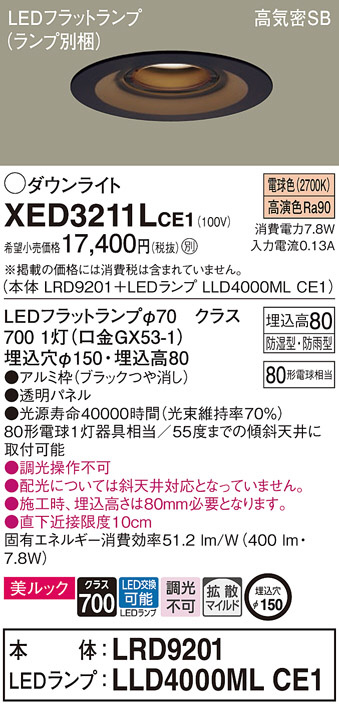 Panasonic ¥¨¥¯¥¹¥Æ¥ê¥¢¥À¥¦¥ó¥é¥¤¥È XED3211LCE1