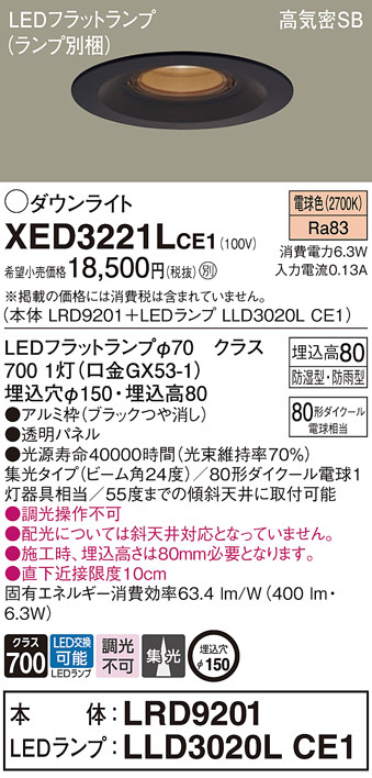Panasonic ¥¨¥¯¥¹¥Æ¥ê¥¢¥À¥¦¥ó¥é¥¤¥È XED3221LCE1