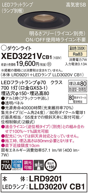 Panasonic ¥¨¥¯¥¹¥Æ¥ê¥¢¥À¥¦¥ó¥é¥¤¥È XED3221VCB1