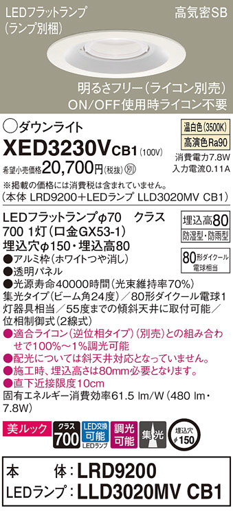 Panasonic ¥¨¥¯¥¹¥Æ¥ê¥¢¥À¥¦¥ó¥é¥¤¥È XED3230VCB1