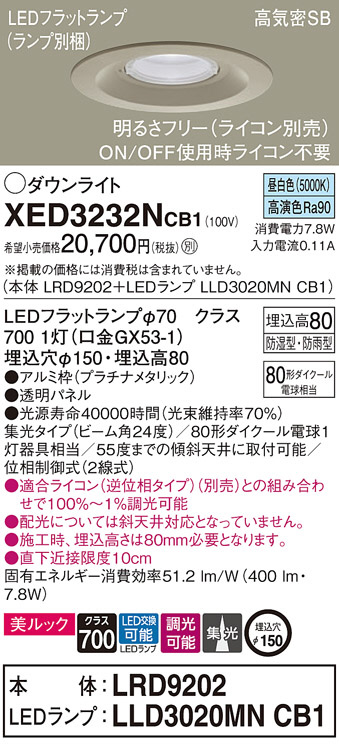 Panasonic ¥¨¥¯¥¹¥Æ¥ê¥¢¥À¥¦¥ó¥é¥¤¥È XED3232NCB1